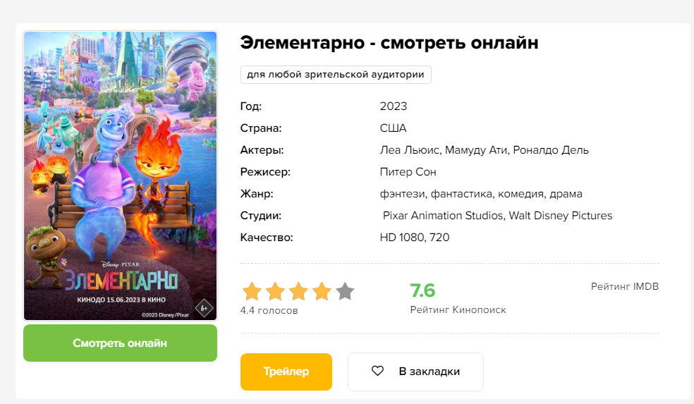 https://vk.com/video-188008198_456239068 - Главная героиня, Эмбер, олицетворяющая стихию огня, встречает загадочного путешественника - Уэйда, чья умиротворённость, мудрость и спокойствие начинают менять её взгляды на жизнь.