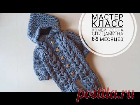 Комбинезон спицами с косами размер 6-9 месяцев мастер класс