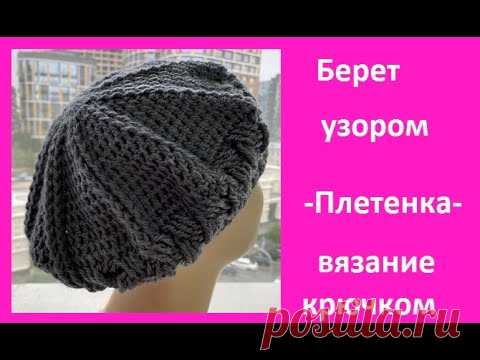 Красивый БЕРЕТ с узором ПЛЕТЕНКА , вязание КРЮчКОМ , crochet hat ( Ш № 220)