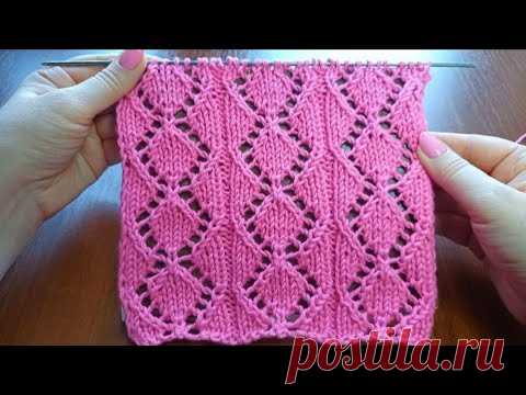 Очень простой и красивый узор "Дорожки из ажурных ромбов" спицами + схема. Knitt. Pattern. Rhombuses