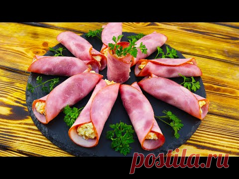 Оригинальная, очень вкусная фуршетная закуска с ветчиной, яйцом и плавленым сырком