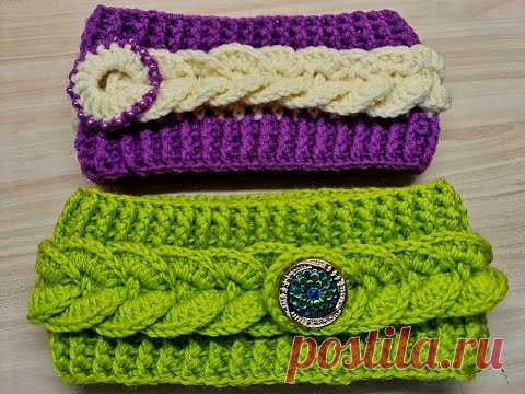 КРАСИВАЯ ПОВЯЗКА НА ГОЛОВУ КРЮЧКОМ. МК для начинающих.