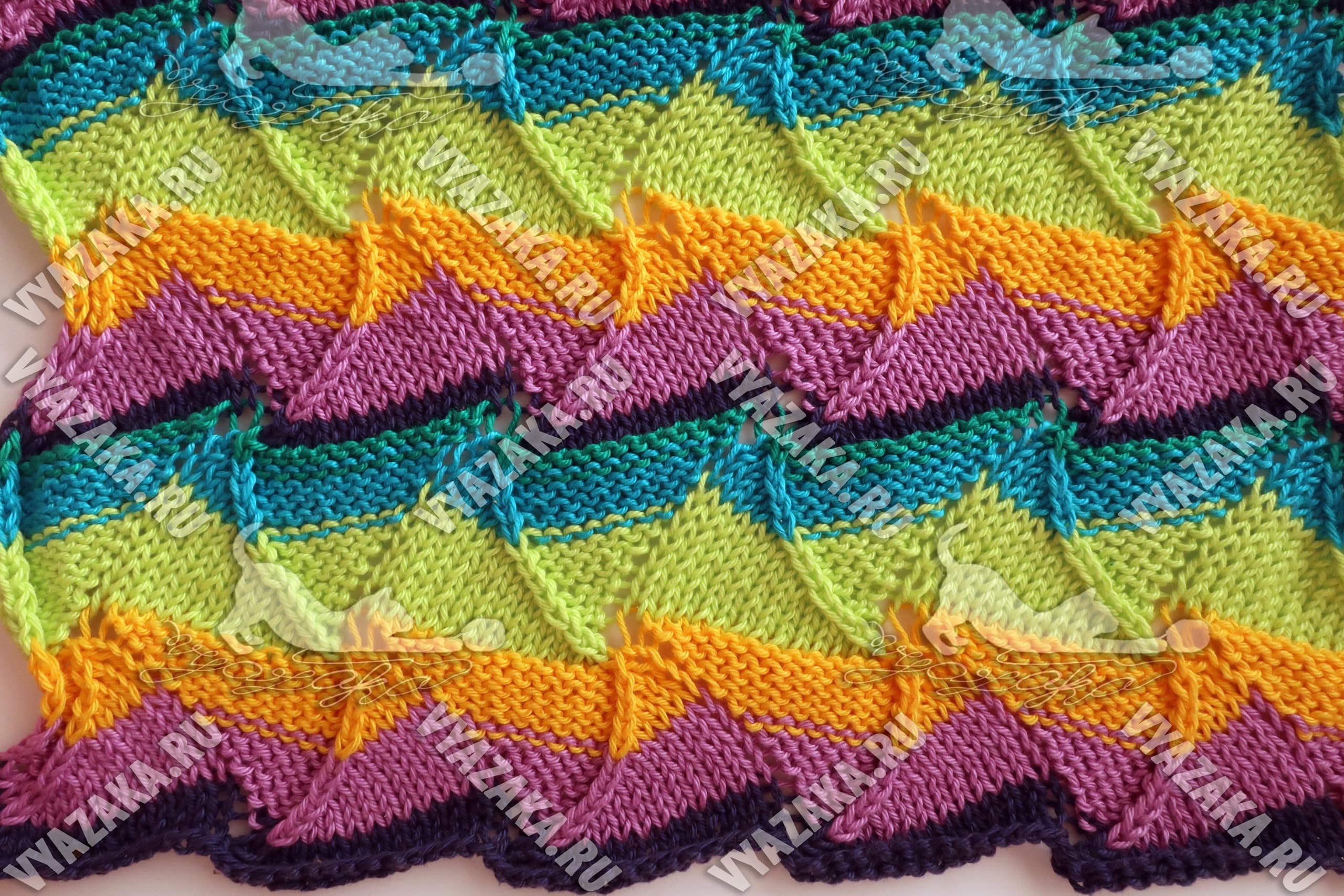 Узор Миссони «Морской прибой» | Вязание спицами и крючком Узор Миссони "Морской прибой" вяжется спицами несколькими разноцветными нитями, из-за чего зигзагообразный рисунок узора очень напоминает морские волны.