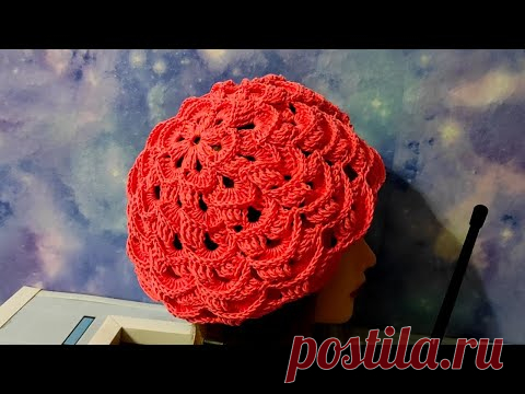 Объёмный, летний берет крючком. Беретик для начинающих.