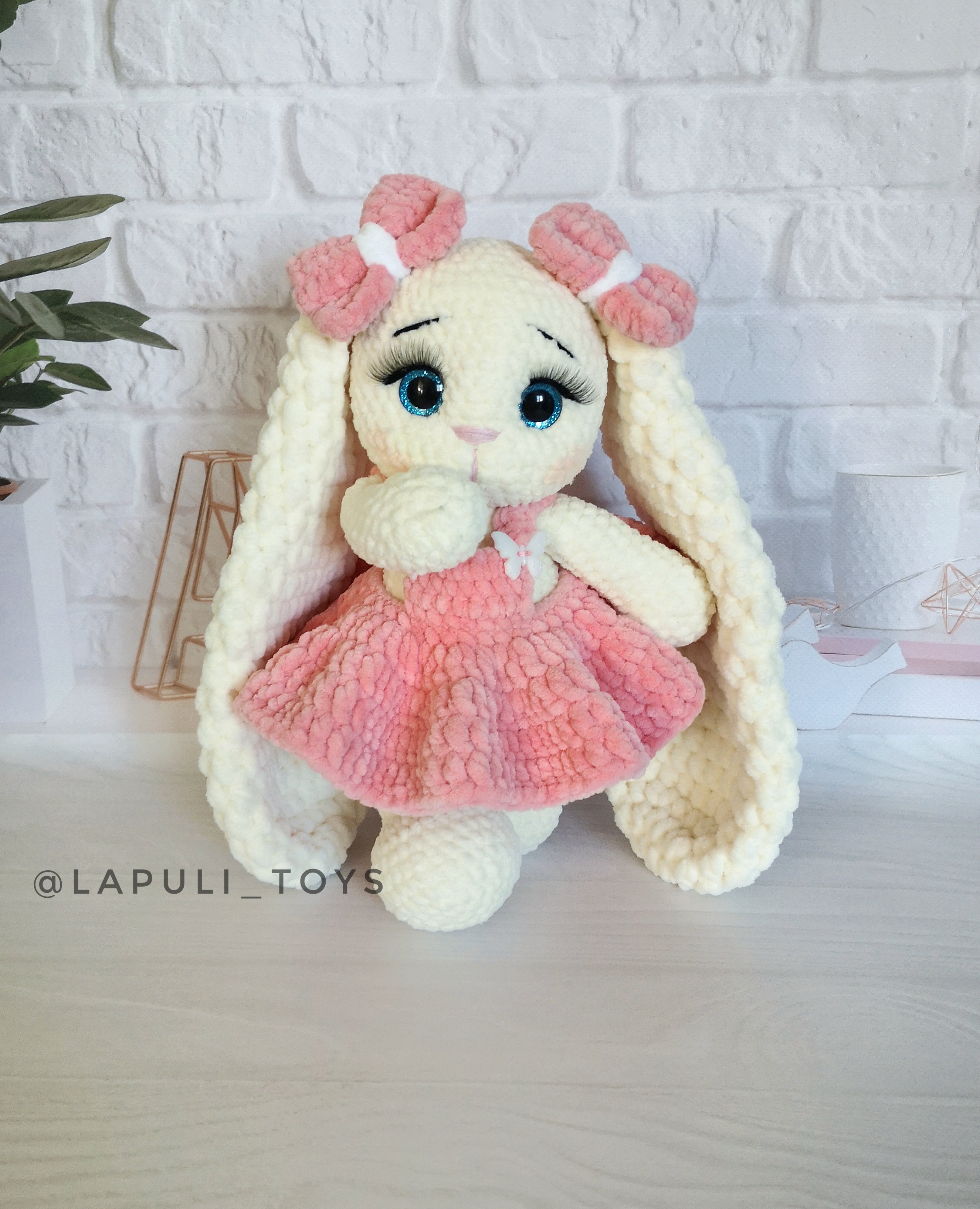 Зайчик плюшевый. Игрушка ручной работы. Кролик. Заяц вязаный.