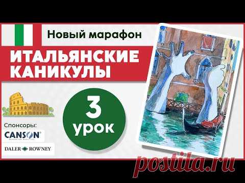 Итальянские каникулы с Dari Art! Рисуем акварельный скетч со скульптурой "Руки из воды", урок 3.