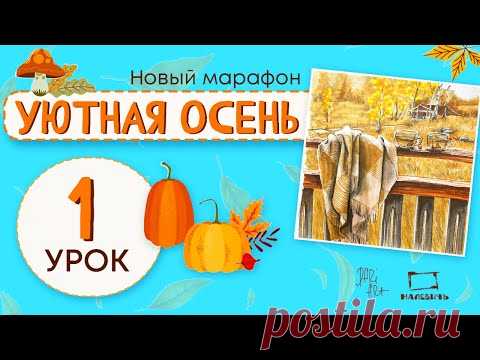 Уютная осень 1 урок! Рисуем маркерами осенний пейзаж