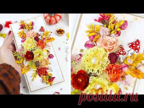Вдохновившись осенними красками, делаю шикарную открытку с цветами, листьями из фоамирана и грибами🍂