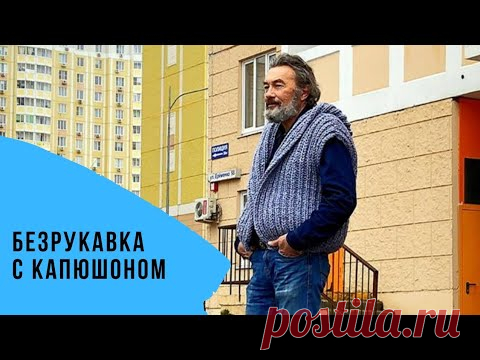Мужская безрукавка спицами Безрукавка с капюшоном Жилет с капюшоном Бомбер