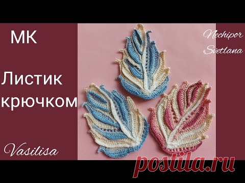 Рельефный листик. 4 оттенка пряжи.+ схема.