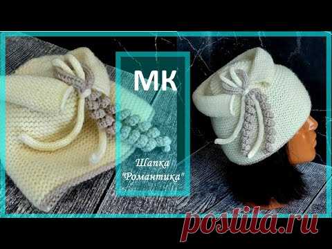 Шапка "РОМАНТИКА" спицами. Подробный МК.