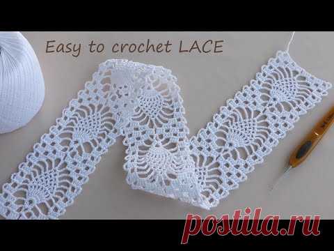 СУПЕР легкий УЗОР "Ананасы' вязание крючком для начинающих 💚Beautiful and very easy to crochet LACE