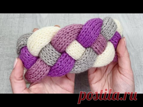 ПОВЯЗКА на голову спицами - готовимся к весне! Вяжем из остатков пряжи