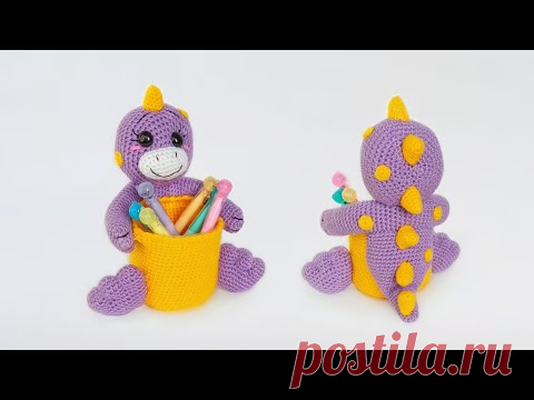 Милашка💜💛 Забавный динозавр крючком Символ 2024 / Карандашница амигуруми💜💛