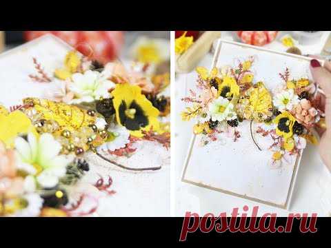 Завораживающий процесс создания осенней открытки цветами из фоамирана, листиком из картона и ткани 🍂