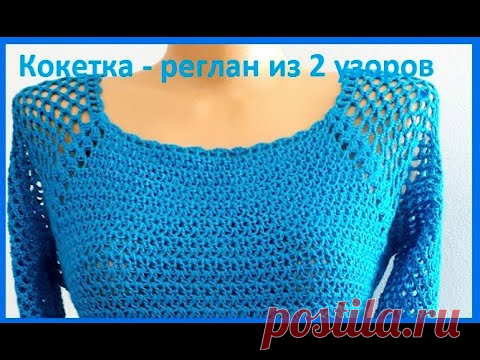 Очень ПРОСТАЯ и красивая Кокетка - РЕГЛАН из 2 узоров , Вязание КРЮЧКОМ ( В №262)