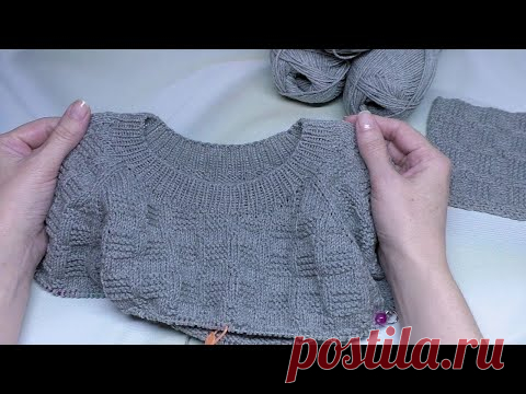 На спицах мужской джемпер. Узнала про новые расчеты для реглана сверху.