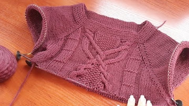Джемпер спицами (винный). Часть 2. Аран (11-16 ряды).