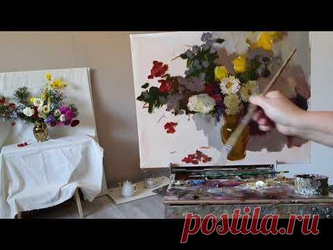 Осенние цветы. Живопись маслом. Как влияет лохматость кисти на качество живописи.