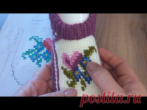 Вязаные тапочки "Незабудки"💙 Часть 1. раз.38/40 🧶тунисское вязание+спицы
