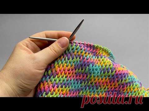 ПЕРЕРУЧЕННЫЙ узор спицами ❤🧡💛💚💙💜 вяжем по кругу