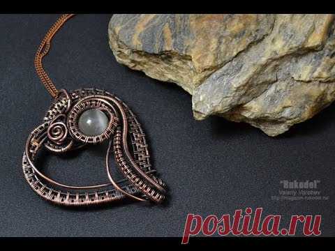 Heart pendant made of copper wire and beads. Handmade Wire jewelry Valeriy Vorobev