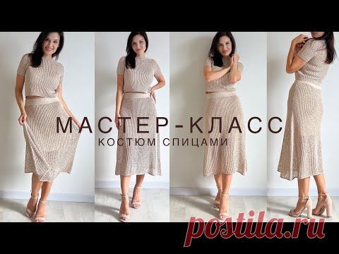 Шик🔥 Подробный мастер-класс трендовый костюм спицами (юбка + топ) узором сетка!