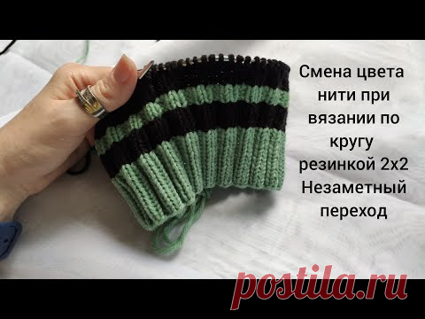 Смена цвета нити при вязании по кругу резинкой 2х2