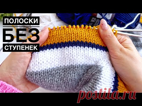 Как вязать полоски без ступенек при круговом вязании. Уроки вязания спицами для начинающих.