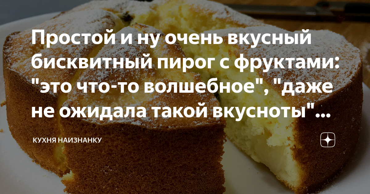 Простой и ну очень вкусный бисквитный пирог с фруктами: "это что-то волшебное", "даже не ожидала такой вкусноты" (из отзывов) Статья автора «Кухня наизнанку» в Дзене ✍: Простейший, вкуснейший, нежнейший бисквитный пирог с фруктами. Поделилась этим рецептом в первый раз еще лет 5 назад. И ни одного плохого отзыва!