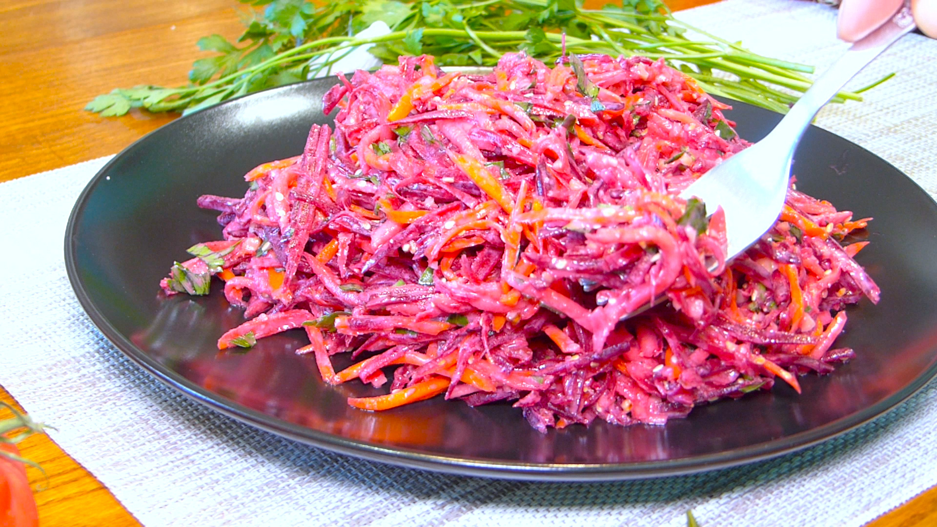 Салат из свеклы. Салат из свеклыПодготовим овощи, один свежий огурец хорошенько промываем, отрезаем попки, очищаем и натираем на терке для моркови по-корейски, отправляем в миску, одну свежую морковь хорошенько промываем, отрезаем хвостики, очищаем и также натираем на терке для моркови по-корейски, добавляем к огурцу, также хорошенько промываем одну свежую свеклу, отрезаем хвостики, очищаем. Теперь свеклу натираем на терке для моркови по-корейски добавляем свеклу к моркови с огурцом, промываем…