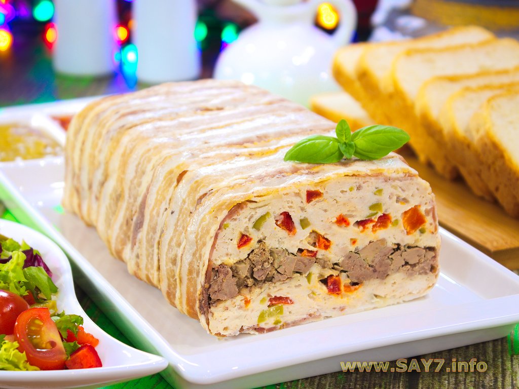 Террин с куриным филе, печенью и перцем в беконе. Террин с куриным филе, печенью и перцем в беконе