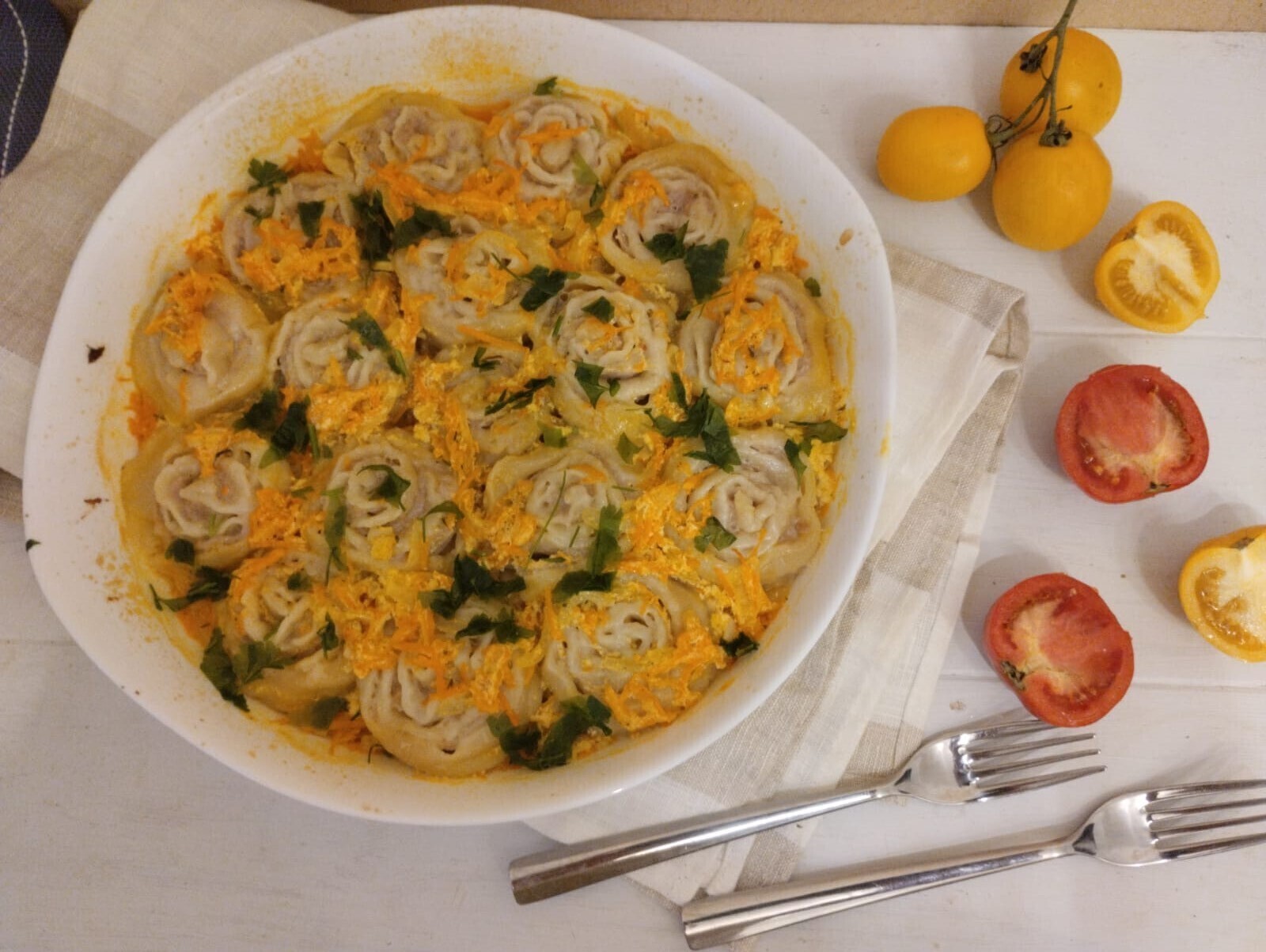 Запеченные ленивые "пельмени". Запеченные ленивые пельмени Для теста муку просеять в миску, добавить соль, сделать углубление в центре муки, добавить кипяток. Перемешивать сначала ложкой, потом руками. Как только тесто начнет собираться в комок, добавить растительное масло и вымесить тесто до гладкости. Готовое тесто положить в пакет и оставить отдохнут.Куриные бедра и фарш пропустить через электромясорубку. Лук очистить и мелко нарезать. К фаршу добавить лук, посолить, поперчить по…