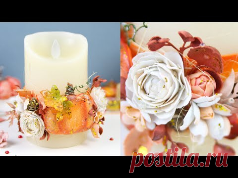 Украшаю свечу цветами, листиками и тыквой из фоамирана 🍁Красивый осенний декор своими руками DIY