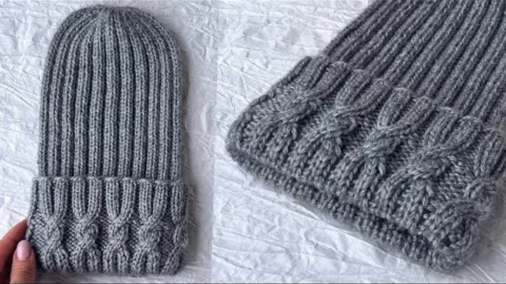 Мастер-класс шапка спицами резинкой 2 на 2 с красивым отворотом.