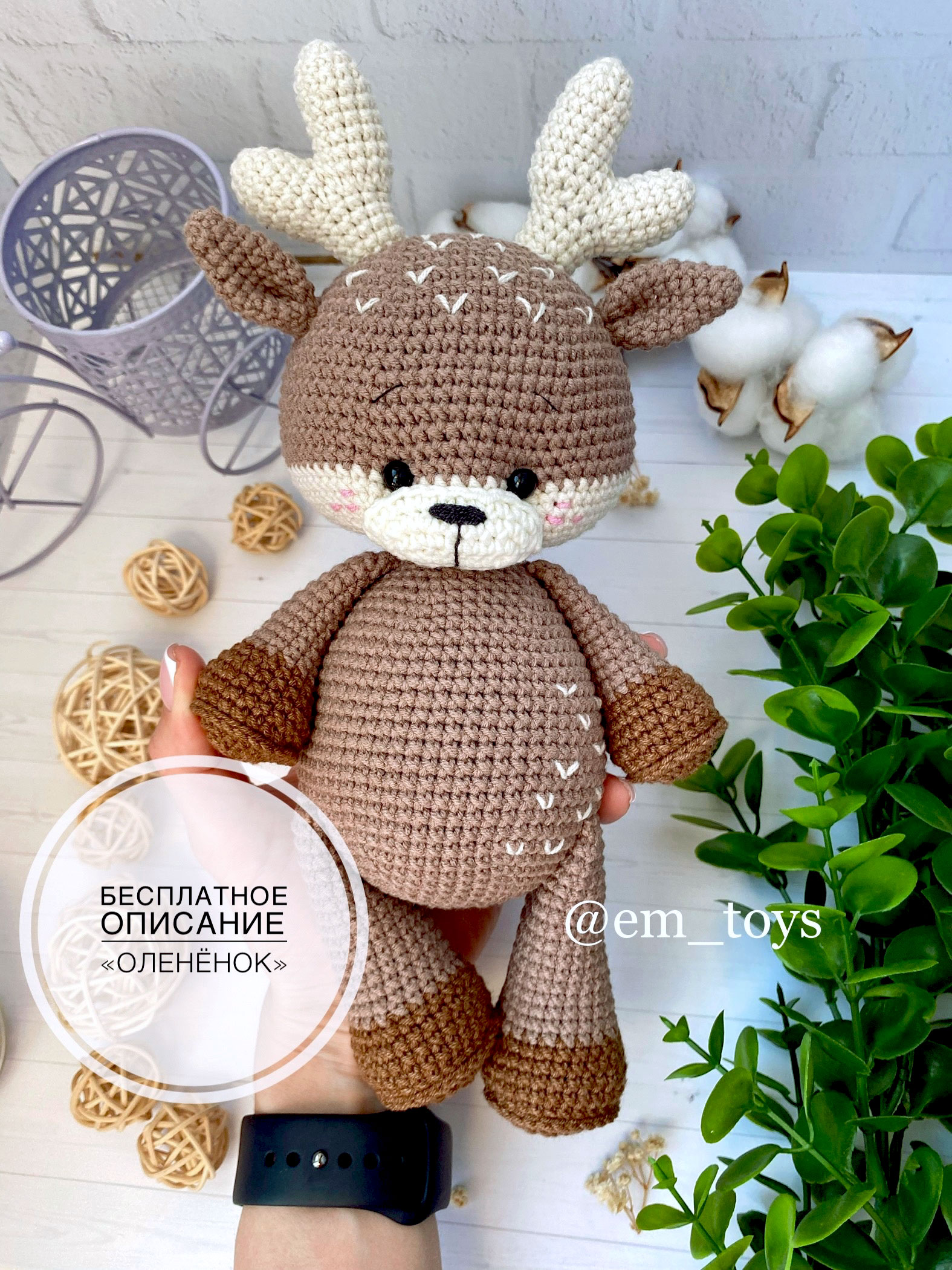PDF Оленёнок крючком. FREE crochet pattern; Аmigurumi animal patterns. Амигуруми схемы и описания на русском. Вязаные игрушки и поделки своими руками #amimore - большой олень, оленёнок.