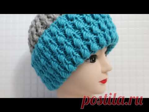 Мастер-класс шапка спицами с красивым узором. Как связать шапку. Вязание для начинающих.
