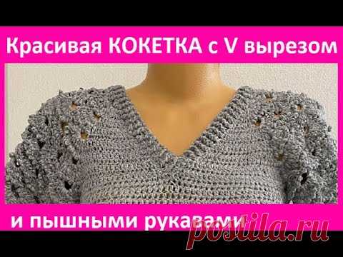 КОКЕТКА с V вырезом и КРАСИВыМИ рукавами , вязание КРЮчКОМ crochet blouse ( В №394 )
