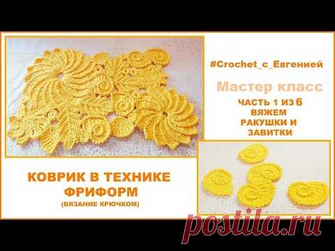 Коврик в технике фриформ. Часть 1 из 6 Вяжем ракушки и завитки. (вязание крючком)
