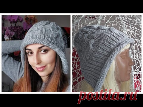 Вязаная шапка с косами. Подробно шаг за шагом.