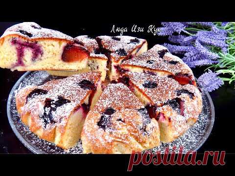 🍑 ПИРОГ НА СКОВОРОДЕ Пышное воздушное тесто на кефире Люда Изи Кук пирог со сливами выпечка рецепт