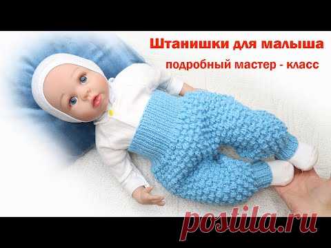 Детские штанишки спицами новорожденному Подробный мастер класс