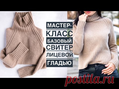 Мастер-класс базовый стильный свитер спицами лицевой гладью с высоким воротом, регланом сверху вниз.