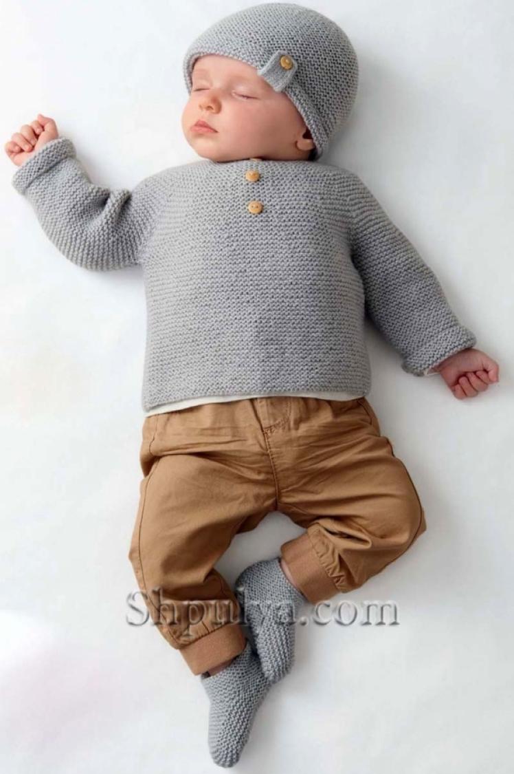 Шапочка, пуловер и пинетки для малыша — Shpulya.com - схемы с описанием для вязания спицами и крючком