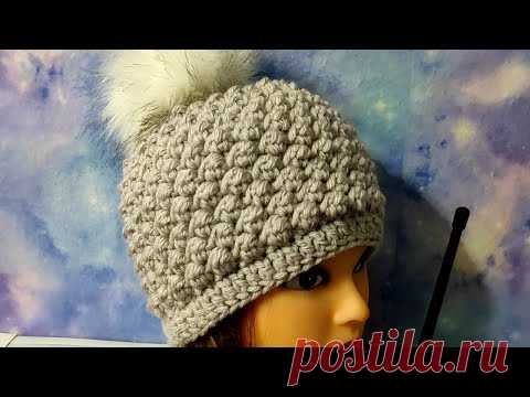 Зимняя шапочка узором 3Д крючком. Подробное видео для начинающих.