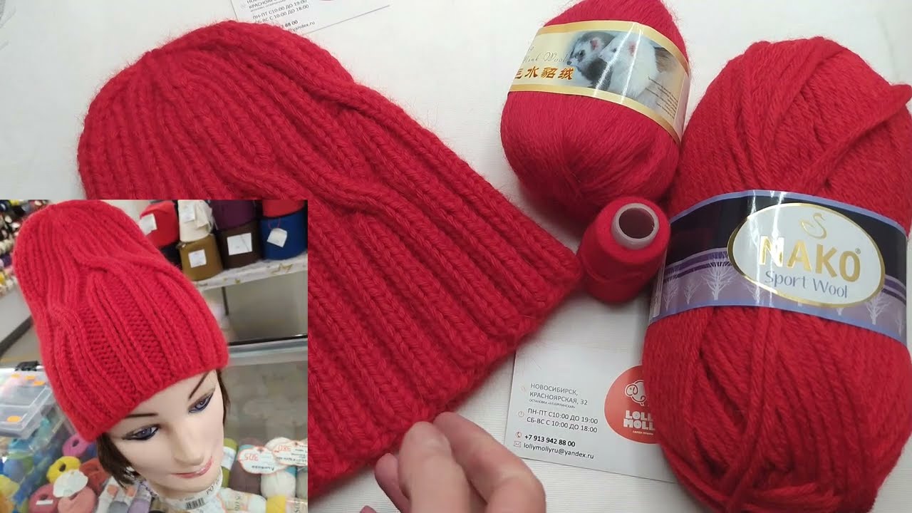 Эффектная очень простая шапка спицами. Обзор модели. Описание под видео.
