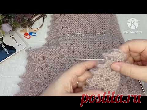 Шейная косынка или бактус с зубчатым краем и ажуром. Вяжем спицами...