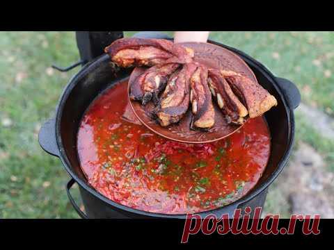 БОРЩ ПО-СМОЛЕНСКИ В КАЗАНЕ НА КОСТРЕ - YouTube
