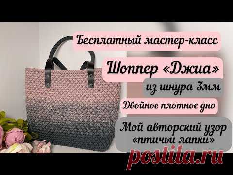 Шоппер «Джиа» из шнура 3мм🧶👜🪄 Мой авторский узор🌺🧶👜 Подробный МК🙂🌈🪷