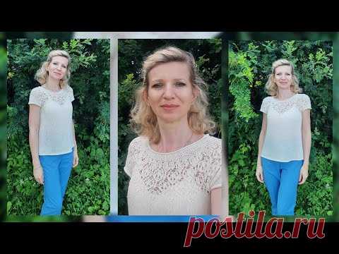 Кофточка спицами с красивой ажурной кокеткой./Подробный МК 🧶